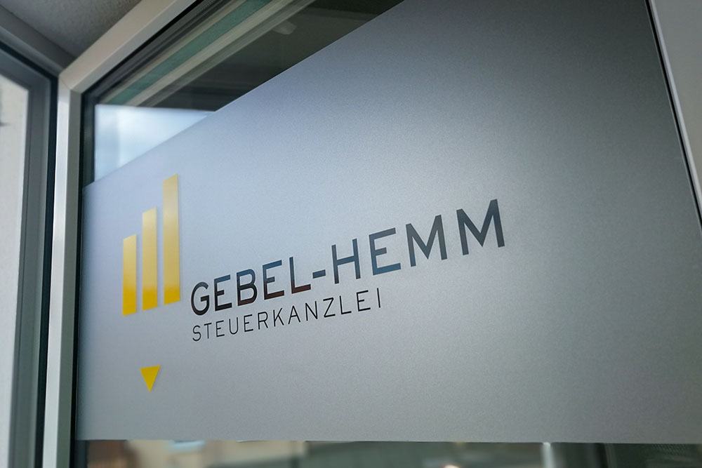 Fenster- und Glastürbeschriftung für Steuerberatung Gebel-Hemm in Bad Liebenstein und Eisenach.